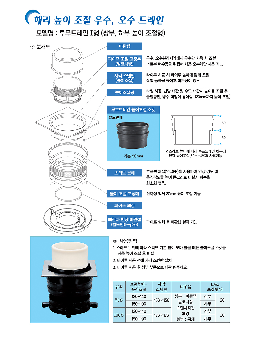 루푸드레인I형 (상부, 하부 높이 조절형)