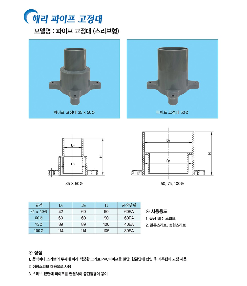 해리 파이프 고정대 (스리브형)